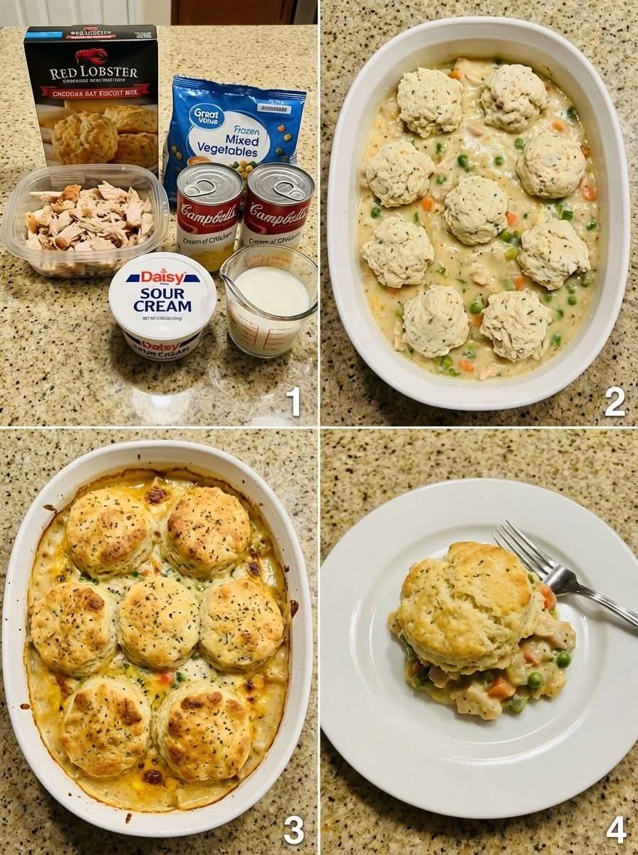 Every spoonful is packed with tender chicken, vibrant vegetables, and rich, savory sauce, all crowned with golden, buttery biscuits. It is simple, satisfying, and guaranteed to impress.