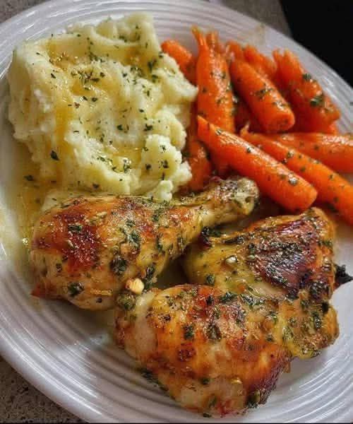 The Ultimate Comfort Meal Herb Baked Chicken Drumsticks with Creamy Mashed Potatoes and Carrots